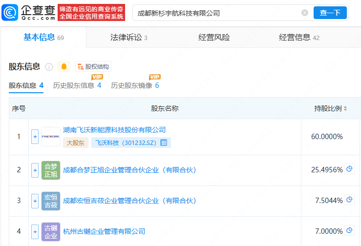 近日,成都新杉宇航科技有限公司发生工商变更,新增飞沃科技(301232)为大股东,持股比例达60%,同时公司主要人员亦发生变更。企查查显示,成都新杉宇航科技有限公司成立于2018年9月,法定代表人为刘杰九融配资,注册资本为565万元,经营范围包含:工程和技术研究和试验发展;增材制造;3D打印服务;3D打印基础材料销售等,现由飞沃科技、成都合梦正旭企业管理合伙企业(有限合伙)等共同持股。