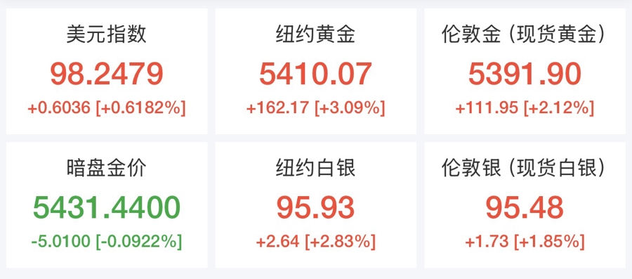 金价冲破5400美元
